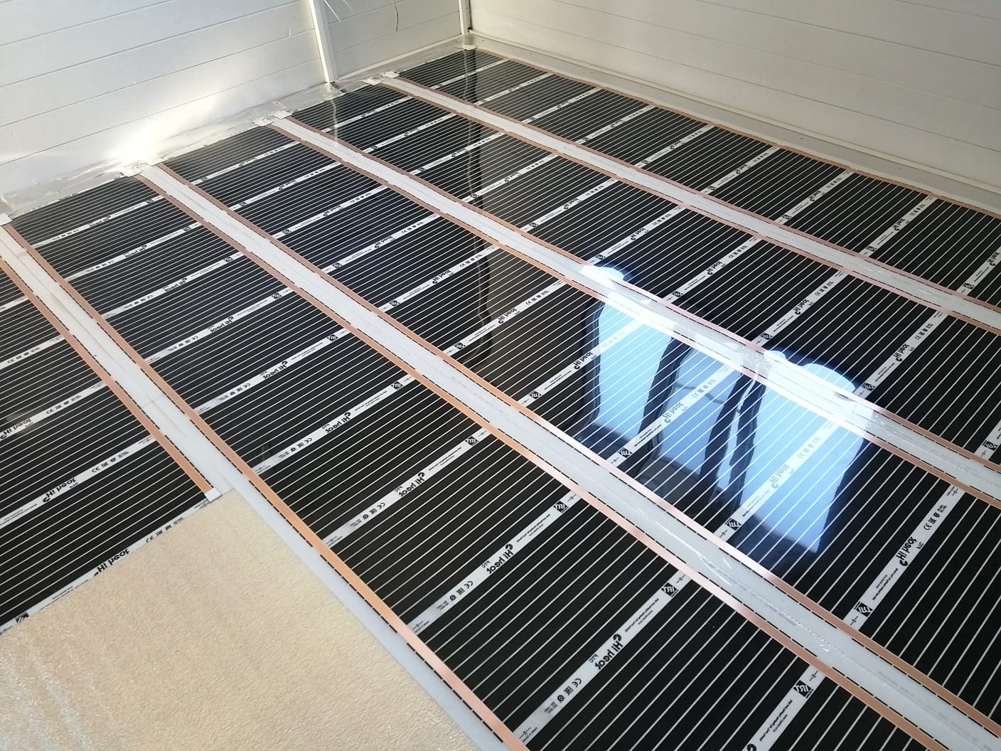 Был выполнен монтаж инфракрасного классического теплого пола Энерпия в квартире на площадь 12 м2. Саморегулируемые и классические инфракрасные пленочные теплы полы подходят для укладки под ламинат, ковролин, линолеум, паркет для теплого пола. Не сушат воздух, толщина-всего 0,3 мм, поэтому не поднимают уровень пола.
